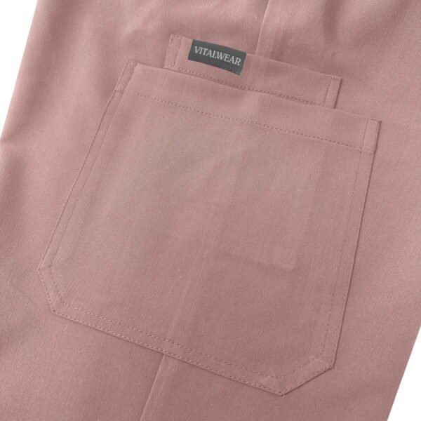 The VitalWear Women’s Jogger Scrub Pants bring a modern edge to medical wear. Designed with a stylish tapered fit, these joggers are made from a superior 210 GSM polyester-rayon-spandex blend that ensures durability, flexibility, and comfort. Unlike lighter scrubs that lose structure, VitalWear joggers retain their shape and color even after repeated washing. Featuring six practical pockets, they offer generous storage without bulk, making them ideal for professionals who value both style and performance.
